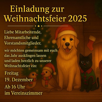 Tiervermittlungen und Gassi mit Hunden wieder ab 02.01.2026 nach telefonischer Terminvereinbarung!