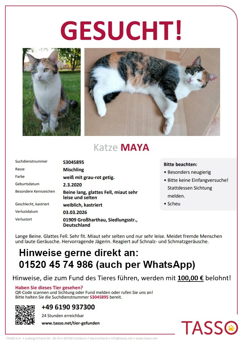 Wir vermissen zwei unserer geliebten Katzen. Unsere Katze Ruby (Siam) ist seit August 2025 verschwunden, und Ira wird seit dem 6. Dezember 2025 schmerzlich vermisst. Beide gehören zu unserer Familie. Für jede noch so kleine Information wären wir unendlich dankbar. Wir hoffen sehr, unsere Katzen eines Tages wieder in die Arme schließen zu dürfen.