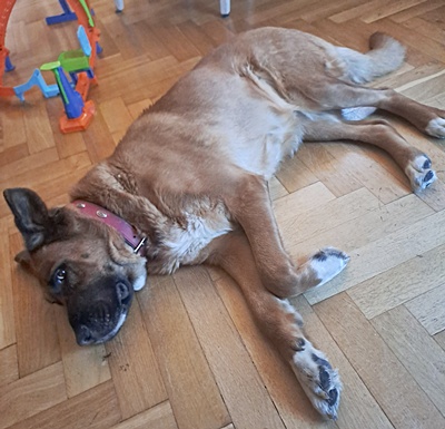 Aus familiären Gründen müssen wir uns leider von unserer Hündin Jacky trennen und suchen auf diesem Wege ein neues Zuhause für sie. Sie ist verspielt und sehr treu. Auch kann sie tagsüber in der Wohnung bleiben und freut sich dann, wenn es raus geht. Jacky ist ein Mischling (Schäferhund und Boxer), ist 6 Jahre alt, nicht kastriert und gegen Tollwut geimpft. Jacky mag keine Katzen. Kindern gegenüber ist sie sanft. Hündin Jacky braucht erfahrene Menschen.