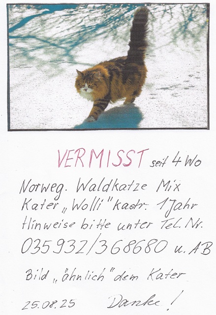 Kater Wolli vermisst, in Malschwitz! Infos bitte an Frau Liebe!